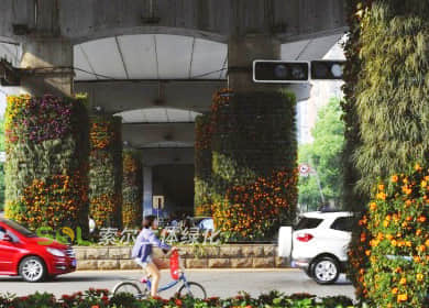 橋墩綠化,可應(yīng)用于跨路橋、人行天橋、高架橋、立交橋、高速公路、輕軌等橋墩的綠化美化,用于城市道路景觀提升,提升城市整體形象。